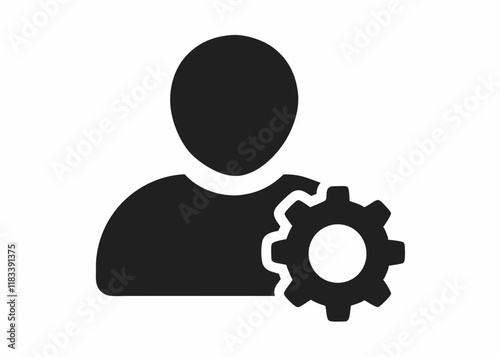 Simple black icon, human silhouette, gear symbol, user settings concept, minimalist design, high contrast, flat graphic, profile management illustration, system configuration pictogram, black and whit
