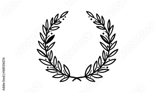 Simple black laurel wreath design with elegant leaf details. Vector retro hand drawn illustration