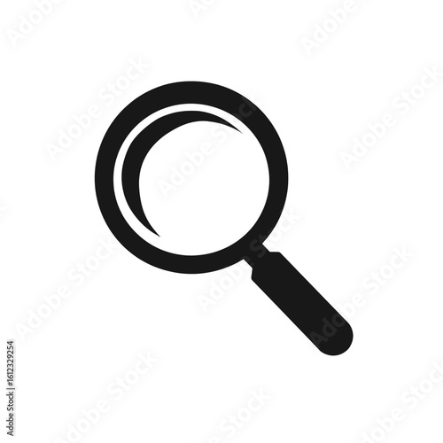 Simple Black Magnifying Glass Icon on a White Background, Symbolizing Search and Discovery