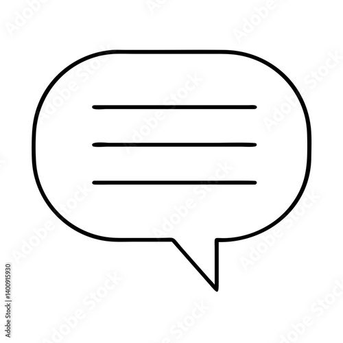 Simple Black Outline Speech Bubble with Three Lines of Text Inside Representing a Message or Communication