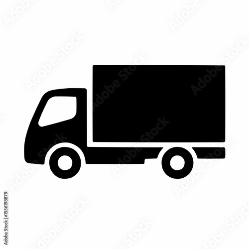 simple black silhouette of a delivery or cargo truck, side view, in a minimal icon style.