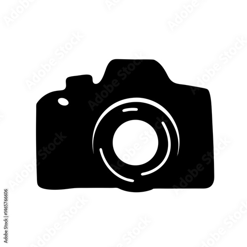 Simple black silhouette representation of a camera with a prominent lens
