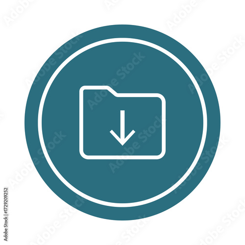 Simple blue circle icon with a white outline of a folder and download arrow