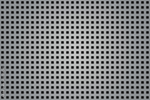 Simple brushed aluminum surface with geometric pattern and soft spotlight effect from top of image. Square grill, grid, screen, sheet metal design element for websites, print and other graphics.