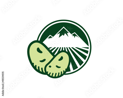 Simple Circle Mountain with Lea and Soya Bean Symbol Modern Logo Vector