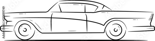 Simple drawing of a car from black lines. Side sketch of an old classic american car on a white background.