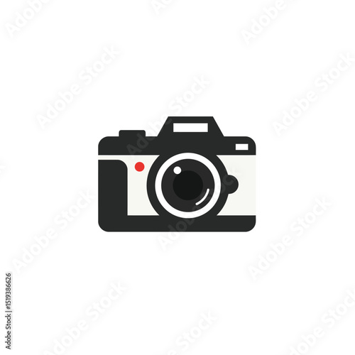 Simple Flat Design Camera Icon with Red Dot on White Background