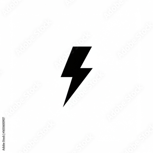 Simple flat design of a lightning bolt icon. Black electric thunder symbol representing power, energy, and speed. Isolated vector graphic for web and apps.