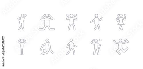 simple gray 10 vector icons set such as accomplished human, aggravated human, alive human, alone amazed amazing amused editable vector icon pack
