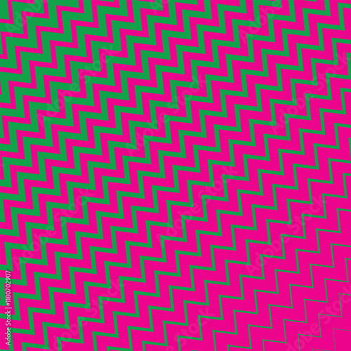 simple green colour daigonal thik to thin zig zac line pattern on pink colour background.