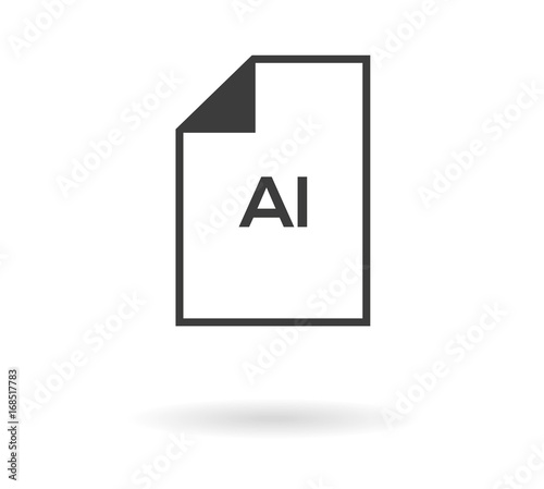 Simple greyscale icon with file and AI text inside - can be used as button for download or upload .ai file, isolated on white with shadow