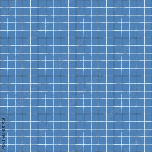 Simple hand drawn grids note seamless pattern, school paper, math page, white on blue