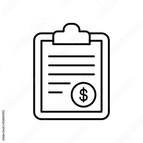 Simple icon depicting a clipboard with a dollar sign, representing financial documents.