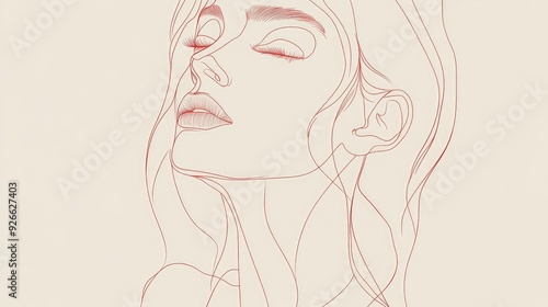 Simple line art female avatar with a thoughtful expression, minimalistic design with petrol details.