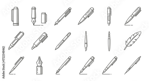 Simple line art icons depicting various ice cream cones, scoops, and desserts, including one location pin.