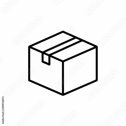 Simple line art illustration of a closed cardboard shipping box in isometric view