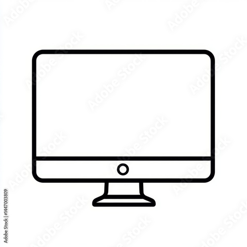 Simple line art illustration of a desktop computer monitor. A basic, outline drawing of a modern monitor, ideal for digital display, web design or graphic usage. Includes screen, bezel, and stand