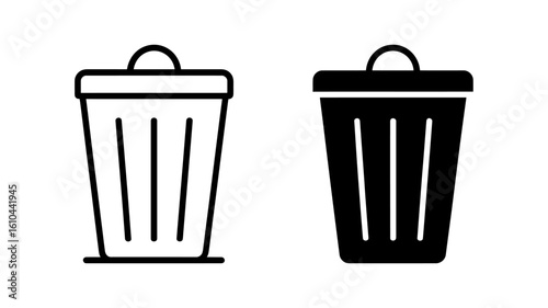 Simple Line Art Trash Can Icons: Black and White, Waste Disposal Symbols, Clean Design.
