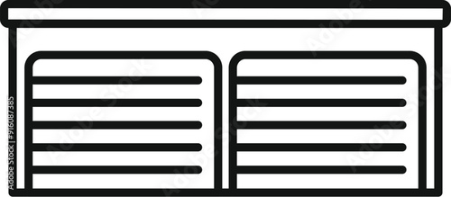 Simple line drawing of a closed double garage door with an automatic opener system, isolated on a white background