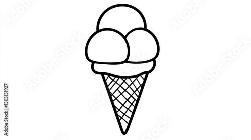 simple line drawing of an ice cream cone with three balls, designed as if it's for children to color in the lines