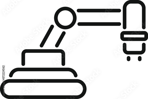 Simple line icon of a robotic arm moving an object in an industrial setting