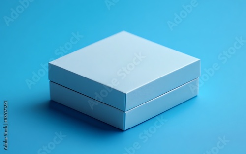 Simple matte sky blue box for singleuse sachets, same size as a sachet, with a matte sky blue sachet outside, plain background color E1F6FF