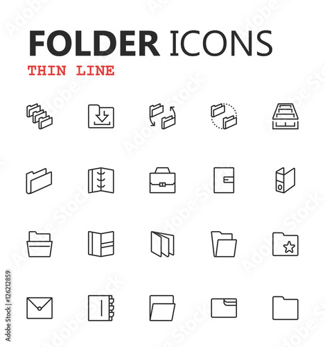 Simple modern set of folders and archives thin line icons. Premium symbol collection. Vector illustration.