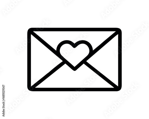 Simple Outline Icon of an Envelope with a Heart Shape Symbol