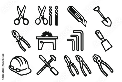 Simple Outline Style Handyman Tools Vector Set for Repair and Building