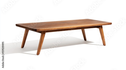 Simple, rectangular wooden coffee table. Features a natural wood grain and clean lines