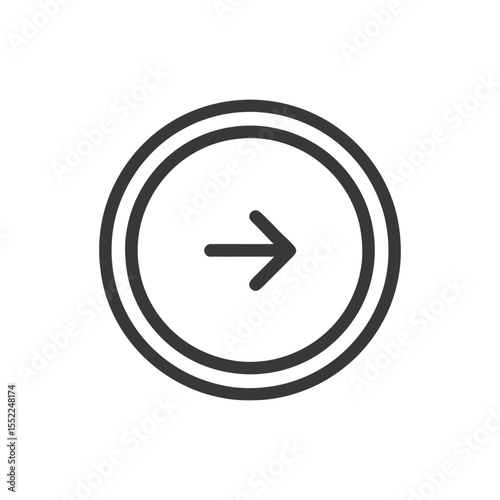 Simple Right Arrow Icon in Double Circle, Minimalist Design