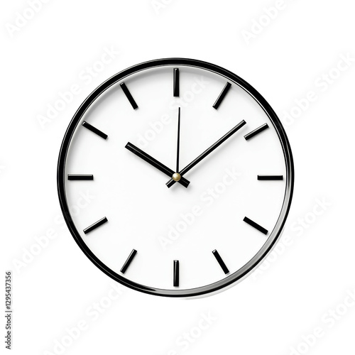 Simple round analog wall clock with black hands and white face isolated on transparent background (PNG)