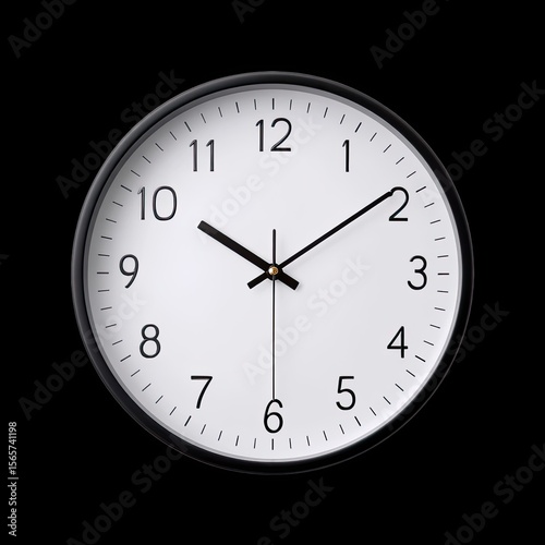Simple Round Wall Clock on Black Background with Clear Numbers