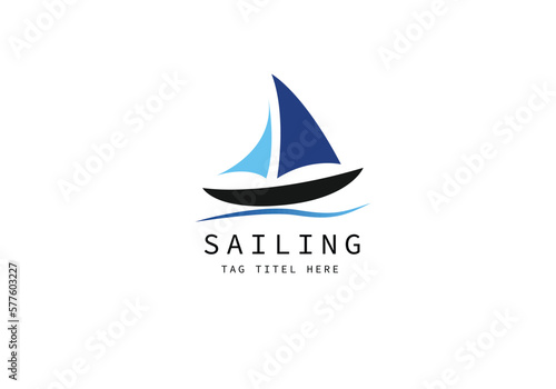 Simple Sailboat dhow boat ship on Sea Ocean Wave with line art style logo design
