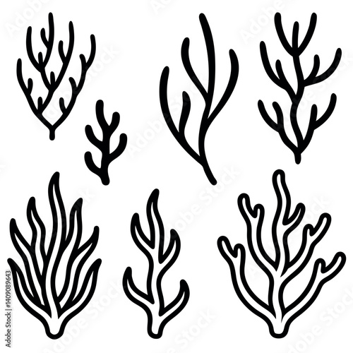 Simple Seaweed Icon Set, Black and White Vector Designs