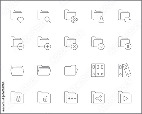 Simple Set of folder Related Vector Line Icons. Vector collection of documents, file, technology, miscellaneous and design elements symbols or logo elements in thin outline.