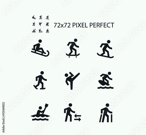Simple Set of People Related Vector Line Icons. Contains such Icons as Skiing, Diving and Skate and more. 72x72 Pixel Perfect.