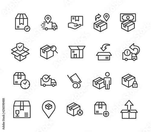 Simple Set of Shipping Related Vector Line Icons. Contains such Icons as Courier, Package Protection, Return and more. Editable Stroke. 48x48 Pixel Perfect.