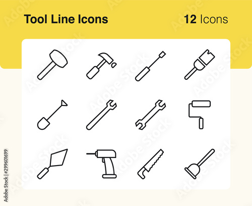 Simple set of vector line icons of construction tool. Usable for modern concepts, web, apps and flyer.