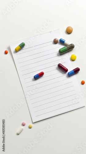 Simple setup of pills on a prescription paper, indicating medication management