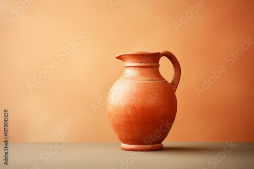 Simple smooth clay jug with rounded shapes in warm terracotta against a white background