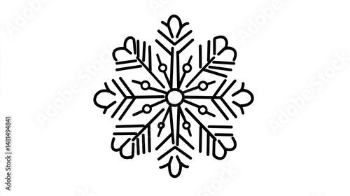 Simple snowflake graphic, detailed design, white background, use in winter design projects