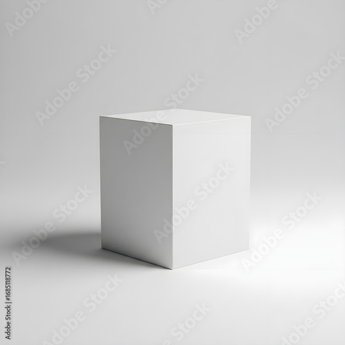 Simple square-shaped podium with clean matte surface, isolated on seamless white background, soft shadow beneath.