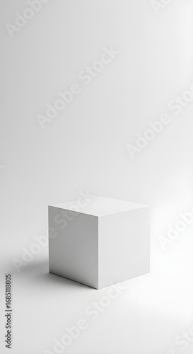 Simple square-shaped podium with clean matte surface, isolated on seamless white background, soft shadow beneath.