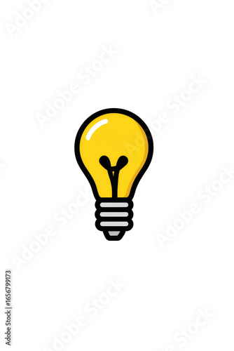 Simple, stylized lightbulb graphic. Bright yellow lightbulb against a black background. Clean, flat design