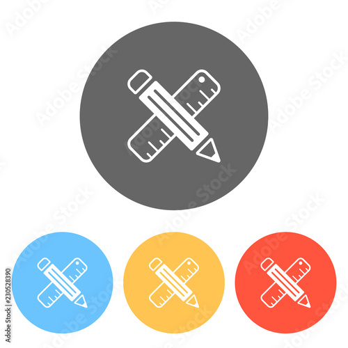 simple symbol of ruler and pencil, criss-cross. Set of white ico