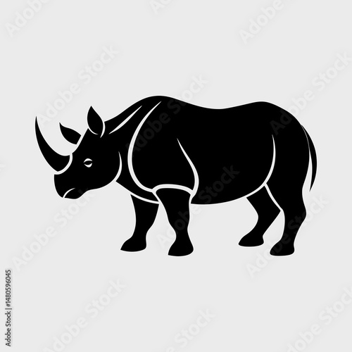 Simple Vector Silhouette of a Rhinoceros Vector Illustration