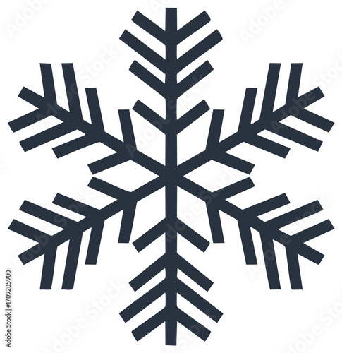 Simple vector snowflake design in dark blue with stylized linear patterns.