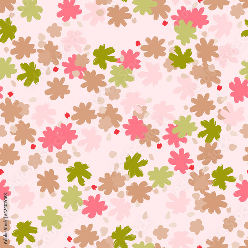 Simple vintage style seamless pattern with hand drawn flowers ornament. Random floral backdrop.