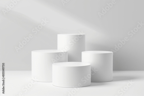 Simple white podium for the presentation of the product. white background. Minimal. 3D rendering. Pedestals.